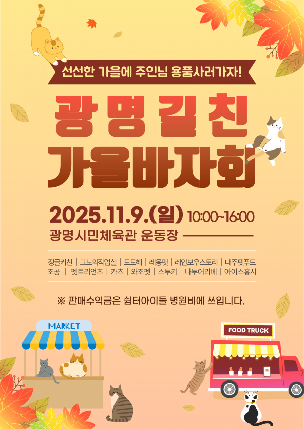 [공익소식] 광명길고양이친구│병원비 마련을 위한 가을 바자회