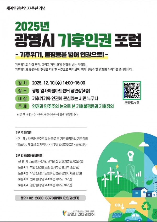 [공익소식] 광명시민인권센터│세계인권선언 77주년 '기후인권 포럼'