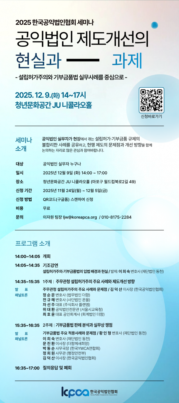 [공익소식] 한국공익법인협회│<2025 공익법인 제도개선의 현실과 과제 -설립허가주의와 기부금품법 실무사례를 중심으로->