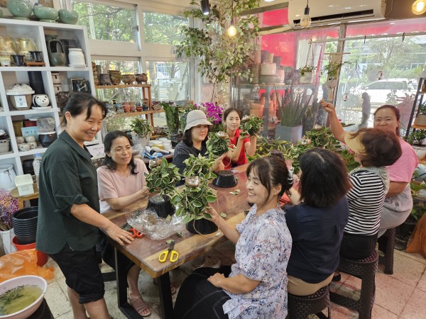 ▶“무엇보다도 힐링의 시간이다. 다 같이 꽃을 가지고 논다. 매주 수요일마다 모여서 안부도 묻고 이야기도 나누고 노래도 흥얼거린다. 그러면서 꽃을 보고 만지고 다듬는 과정에서 부정적인 감정은 날아가고 긍정적 감정이 저절로 솟아난다. 웃음소리가 끊이지 않는 만남이다.”