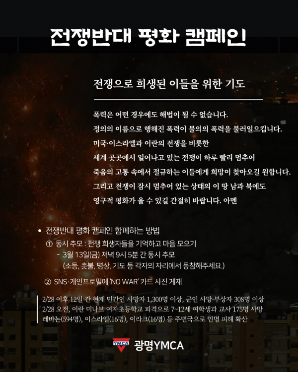 [공익소식] 광명YMCA│전쟁반대 평화캠페인