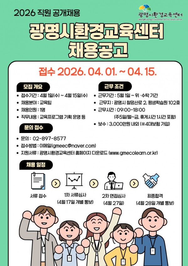 [채용공고] 2026 광명시환경교육센터 직원 공개 채용 공고