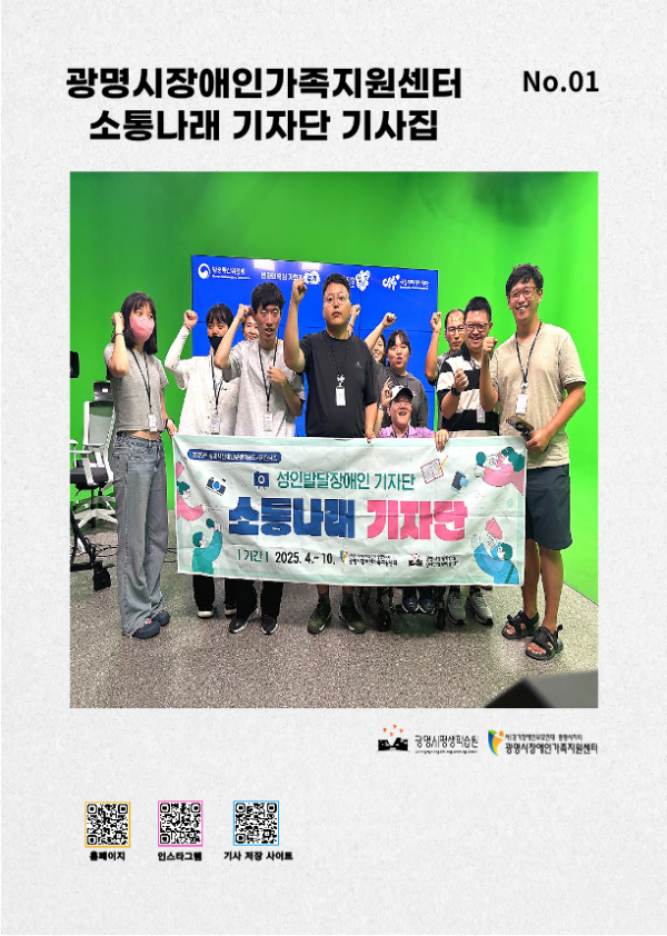 [광명시장애인가족지원센터] 소통나래 기자단 기사집 No.01 첨부파일 : 광명시장애인가족지원센터 소통나래 기자단 기사집 No.01.pdf 다운로드 광명시장애인가족지원센터에서 발간한 '소통나래 기자단 기사집 No.01'을 공유합니다. 목록 [광명시장애인가족지원센터] 장애인가족 생애사 글쓰기 '나의 시간, 우리의 이야기' [광명시장애인가족지원센터×광명시환경교육센터] 모두를 위한 탄소중립 실천 AAC(보완대체의사소통) 워크북
