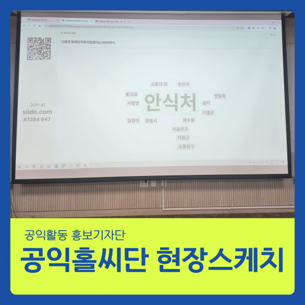즉석에서 “나에게 장애인가족지원센터는 ○○○이다.” 라는 문장을 채우는 시간도 이어졌습니다. 센터에 관한 사용자들의 인식을 한 눈에 알아볼 수 있었습니다.