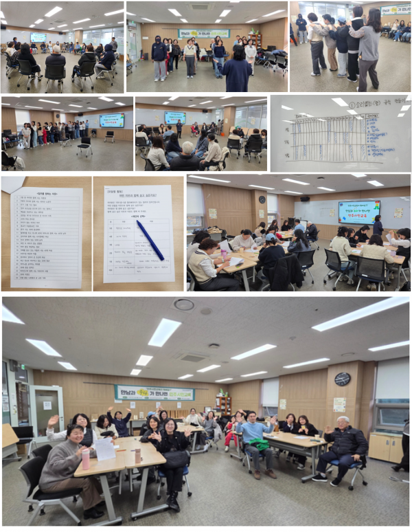 “민주시민교육이라고 하면 일반적으로 이론을 배우거나 강의식 수업을 떠올리기 쉽습니다. 하지만 오늘은 서로의 감수성을 확인하는 시간을 가져보려고 합니다. 경청과 합의를 통해 움직임이 있는 활동을 해보겠습니다. 중략… 저는 최고의 교육 방법은 ‘놀이’라고 생각합니다. 지금부터는 조를 나누어 의사소통 훈련을 해보겠습니다.” 이야기가 끝나자 의자와 탁자를 치우고 넓은 공간을 만들며 첫 활동이 시작되었습니다.