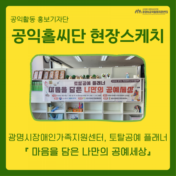 공익홀씨단은 광명시공익활동지원센터 소속으로 공익활동과 관련한 다양한 지역소식, 인터뷰, 공익칼럼 등을 작성하는 공익활동 홍보기자단입니다.