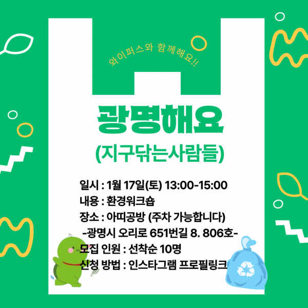 [공익소식] 아띠공방×와이퍼스│광명해요, 지구닦는 사람들 1월 모임 안내