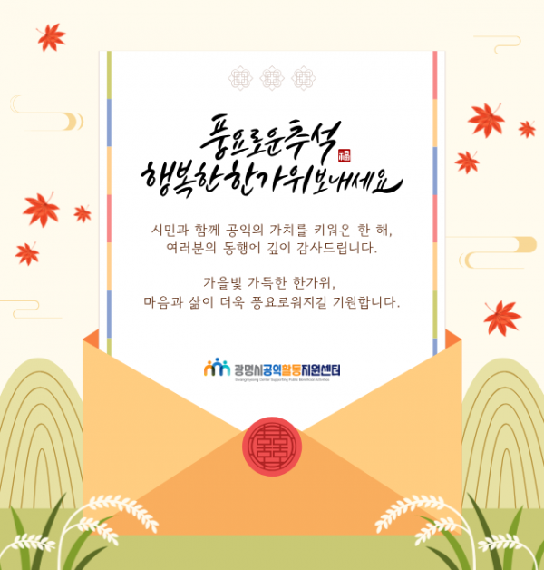 가을빛이 물드는 한가위, 마음과 삶이 더욱 풍요로워지길 바랍니다.