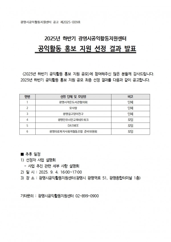 2025년 하반기 공익활동 홍보 지원 선정 결과 발표 작성자 최고관리자 작성일 2025.09.02 조회수 90 목록 [시민참여프로그램]2025지구사랑프로젝트 지구애놀이터 [보도자료] 환경과 공익이 만나다, 지역을 바꾸는 지속가능한 동행