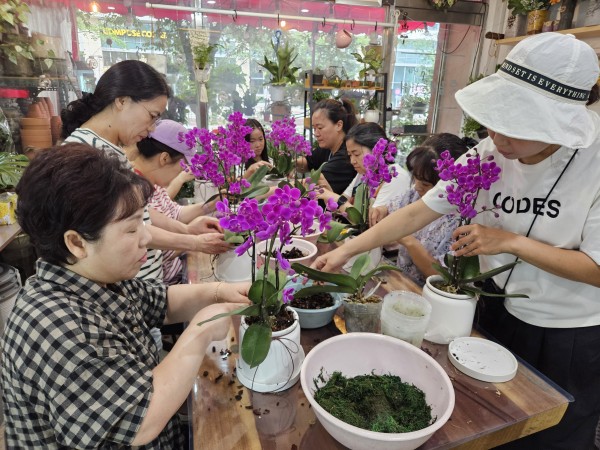 ▶“무엇보다도 힐링의 시간이다. 다 같이 꽃을 가지고 논다. 매주 수요일마다 모여서 안부도 묻고 이야기도 나누고 노래도 흥얼거린다. 그러면서 꽃을 보고 만지고 다듬는 과정에서 부정적인 감정은 날아가고 긍정적 감정이 저절로 솟아난다. 웃음소리가 끊이지 않는 만남이다.”