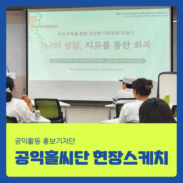 공익홀씨단은 광명시공익활동지원센터 소속으로 공익활동과 관련한 다양한 지역소식, 인터뷰, 공익칼럼 등을 작성하는 공익활동 홍보기자단 입니다.