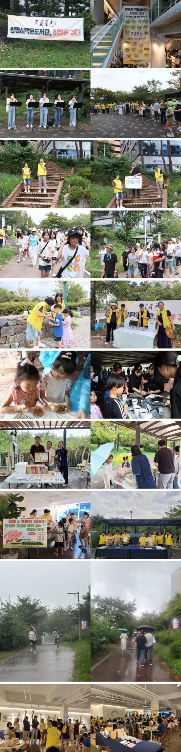 광명시 곳곳에는 20년 전부터 하나둘 생긴 작은도서관이 현재 약 50개 있다. 광명권, 철산권, 소하권, 일직권 총 4권역으로 나뉘어 독서문화 보급과 지역공동체 활성화, 네트워크를 위해 130여 명의 자원봉사자들이 함께 운영하고 있다.