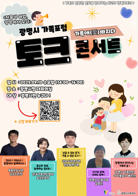 지난 9월 10일 광명시청 대회의실에서 광명시 가족포럼 ‘토크 콘서트’ 가족애(愛)빠지다 <저출생 해법, 광명에서 찾다>가 개최되었습니다.