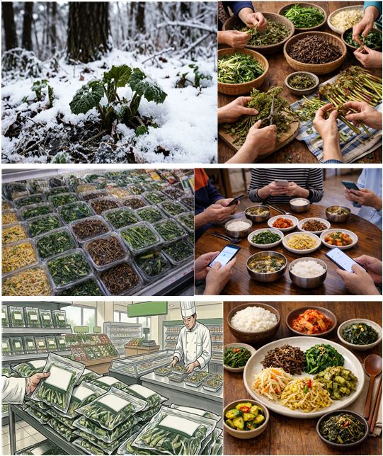 문제는 단지 나물의 종류가 줄어든 데 있지 않습니다. 함께 손을 쓰는 시간이 사라졌고, 계절을 감각하는 능력이 무뎌졌으며, 음식을 둘러싼 대화가 줄어들었습니다.