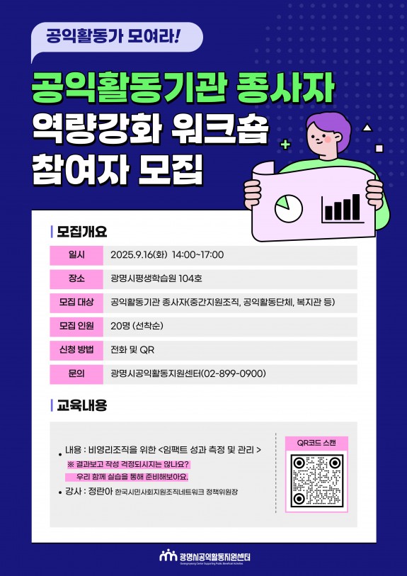 센터에서 주관하는 광명시공익활동가를 위한 공모사업들을 소개합니다.
