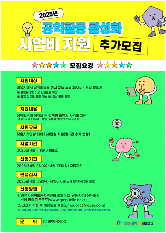 ❍ 사업명 : 2025년 광명시공익활동지원센터 <공익활동 활성화 사업비 지원사업> 추가 모집